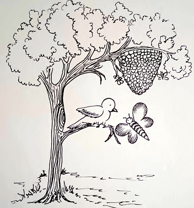 ಪಕ್ಷಿ ಆಕಾಶದಲ್ಲಿ ಹಾರಾಡುತ್ತದೆ. ಅದೇ ರೀತಿ ಜೇನುಹುಳು ಹೂವಿಂದ ಹೂವಿಗೆ ಹಾರುತ್ತಾ ಕಷ್ಟಪಟ್ಟು ಮಧುವನ್ನು ಸಂಗ್ರಹಿಸುತ್ತದೆ. ಅದನ್ನು ಅಂದವಾಗಿ ತಾನೇ…