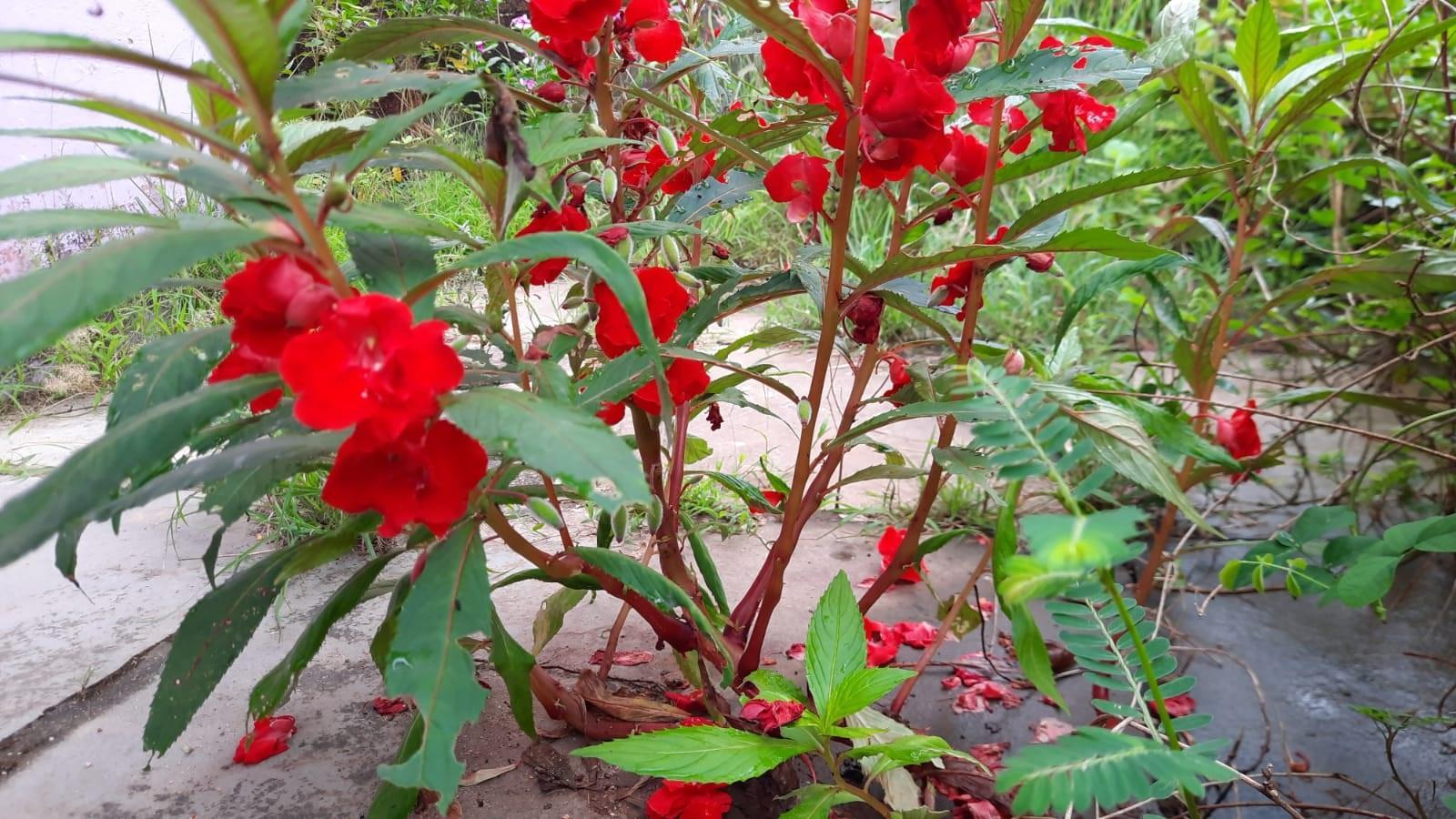 ಕೆಲವೊಂದು ಹೂವುಗಳ ಬಣ್ಣ ಕಂಡಾಗ, ಈ ಬಣ್ಣ ಎಲ್ಲಿಂದ ಬಂದಿತು ಅನಿಸುತ್ತದೆ. ಈ ಹೂಗಳ ಬಣ್ಣ ಗಾಢ ಕೆಂಪು. ಇಲ್ಲೇ ಇರುವುದು ವಿಶೇಷ. ಈ ಗಿಡದ ಬೇರು, ಕಾಂಡ ಎಲ್ಲವೂ ಕೆಂಪು ಬಣ್ಣ (ಎಲೆಯನ್ನು ಬಿಟ್ಟು!). ಬೇರು ಹೀರಿಕೊಳ್ಳುವ ಜೀವಜಲವೇ ಕೆಂಪು ಬಣ್ಣಕ್ಕೆ ತಿರುಗಿತೇನೋ ಅನಿಸುವ ಭಾವ. ತಾಯಿ ತನ್ನುದರದಲ್ಲಿರುವ ಶಿಶುವಿಗೆ ತನ್ನ ರಕ್ತ ಹಂಚುವಂತೆ, ಗಿಡದ ಬೇರಿನಿಂದಲೇ ಕಾಂಡದ ಮೂಲಕ ಹೂವುಗಳಿಗೆ ಕೆಂಪು ಬಣ್ಣ ಹರಿದು ಬಂತೇ ಅನ್ನುವ ಪ್ರಶ್ನೆ ಮನದೊಳಗೆ ಮೂಡಿದ್ದಂತೂ ಸತ್ಯ. ಅರಳಿದ ಹೂವುಗಳೆಲ್ಲವೂ ಕೋಡುಗಳಾಗಿ ಬೆಳೆಯುವುದು ಇನ್ನೊಂದು ಅಚ್ಚರಿ. ಬೆಳೆದ ಕೋಡನ್ನು ಮುಟ್ಟಿದರೆ “ನೀನು ಕೋಡು ಒಡೆಯಬೇಡ. ನಾನೇ ಸಿಡಿಯುವೆ” ಅನ್ನುವಂತೆ ಗಿಡದ ಕೋಡು ತನ್ನಷ್ಟಕ್ಕೆ ಸಿಡಿದು ಬೀಜಗಳನ್ನು ಹೊರಚೆಲ್ಲುವ ಪರಿಯು ಪ್ರಕೃತಿಯ ವಿಸ್ಮಯವೇ ಸರಿ.